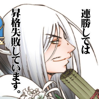 大戦だけはやりに行けるのは救いですな。 何とか昇格戦が見えて来ました…昇格戦失敗して連敗の上降格して、七品に戻っては降格して…長かったな(涙 今度こそ…! てか、バージョンアップっていつなんだろう…魏武が地味に短くなって(怒