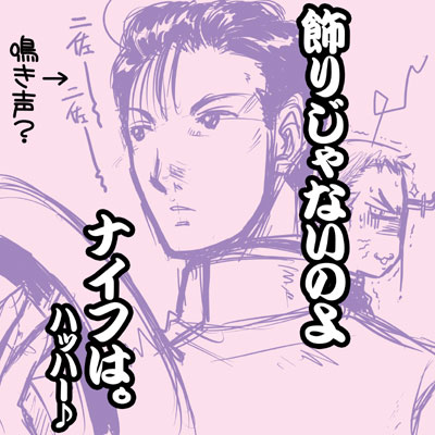 で、落描き。 やっぱコイツら好きすぐる。 壮絶にトライアングラーに見えないトライアングラーで吹く(W 草加には「アナタノオト」でも歌ってもらいますか?(砂吐くからやめれ) 「オベリスク」は何にでも応用が利く良い歌で大好き!