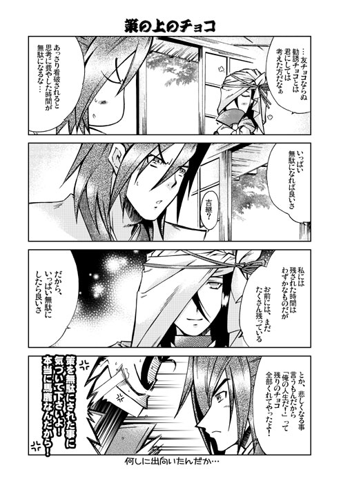 坂の上の雲のパロディ?と言うか、もともと節分ででも使おうかと思ってたネタだったり。 坂の上の雲ででも描けば良いのだが、フィルタかかり過ぎてて采配で描いてしまいました。 根本は変わってないよ…久しぶりに采配漫画描いたけど、前より良くなってるような…(W