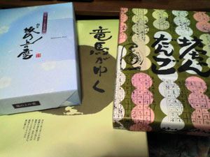 んでその戦利品、見事に四国ですw 「竜馬がゆく」には脱藩の道を駆け抜ける龍馬さんが描かれてます(*´ω`*) 「坊っちゃんだんご」には夏目漱石先生の執筆原稿のイメージがプリントされています(^^) 「坂の上の雲」は特にのぼさんも真之も兄さんもおらず…大和ミュージアムで置いてた「戦艦大和もみじ饅頭」と同系列と推測していますw